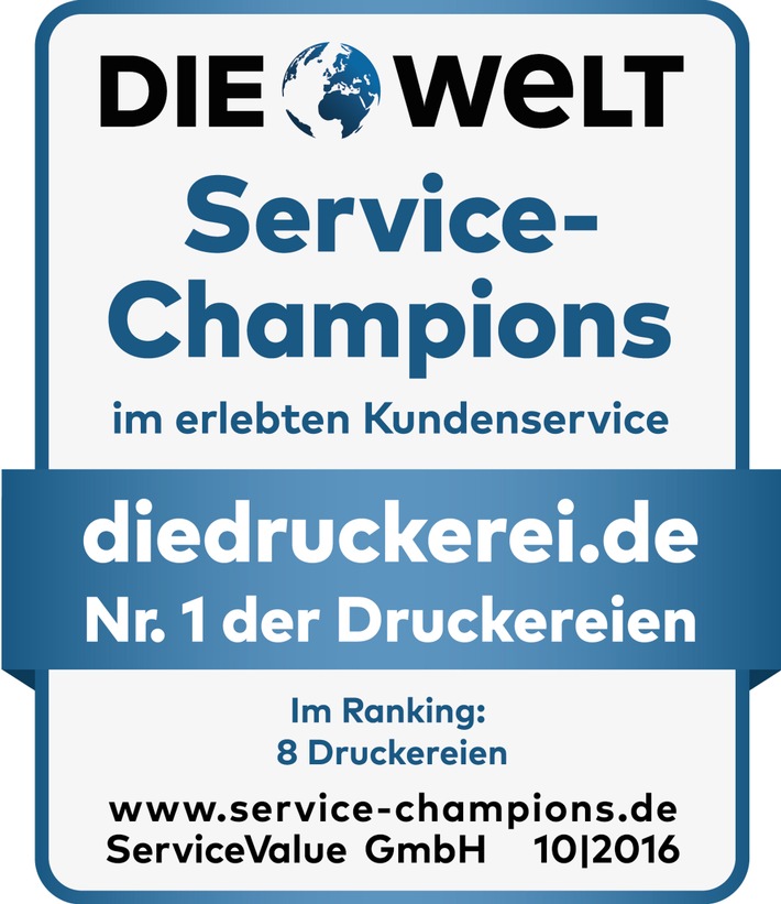 "Service-Champion 2016: diedruckerei.de erneut Branchenprimus (FOTO)"