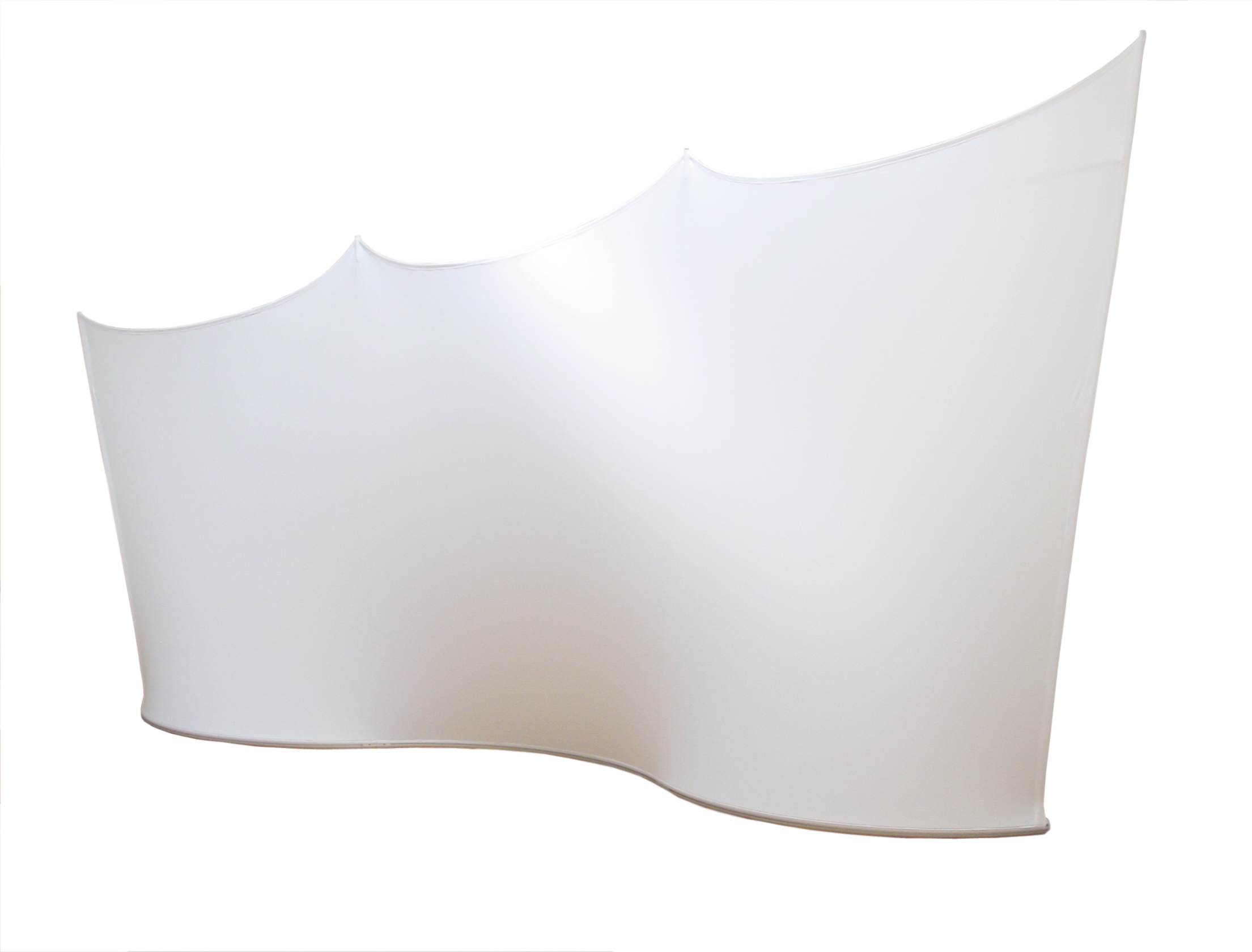 Die Stellwand besteht aus silber eloxierten Aluminiumrohren und -profilen sowie gleichmäßig darüber gespanntem Stretchstoff. Der Stoff ist B1 permanent, also auch nach dem Waschen noch schwer entflammbar. In der Standardausführung ist der Stoff weiß und kann beliebig 4farbig bedruckt werden. Soll die Designwand dem Raum nur einen Farbakzent geben, steht eine Vielzahl verschiedener Farben zur Auswahl - auf Wunsch komplett im jeweiligen Corporate Design. "Je nach Einsatzbereich kann es sinnvoll sein, eine lichtdichte Variante zu wählen. Hier wird der weiße Stoff mit einer zusätzlichen grauen oder schwarzen Schicht hinterlegt.", berichtet Detlef Hein, Geschäftsführer von h&h creativteam.