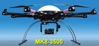 (firmenpresse) - Der MK8-3500 besteht aus einem Vollcarbon-Rahmen mit 8 acht leistungsstärken Brushless Motoren und 15 Zoll Propellern.