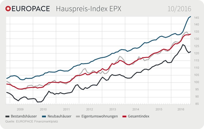 der aktuellen Auswertung des EUROPACE Hauspreis-Index EPX für den