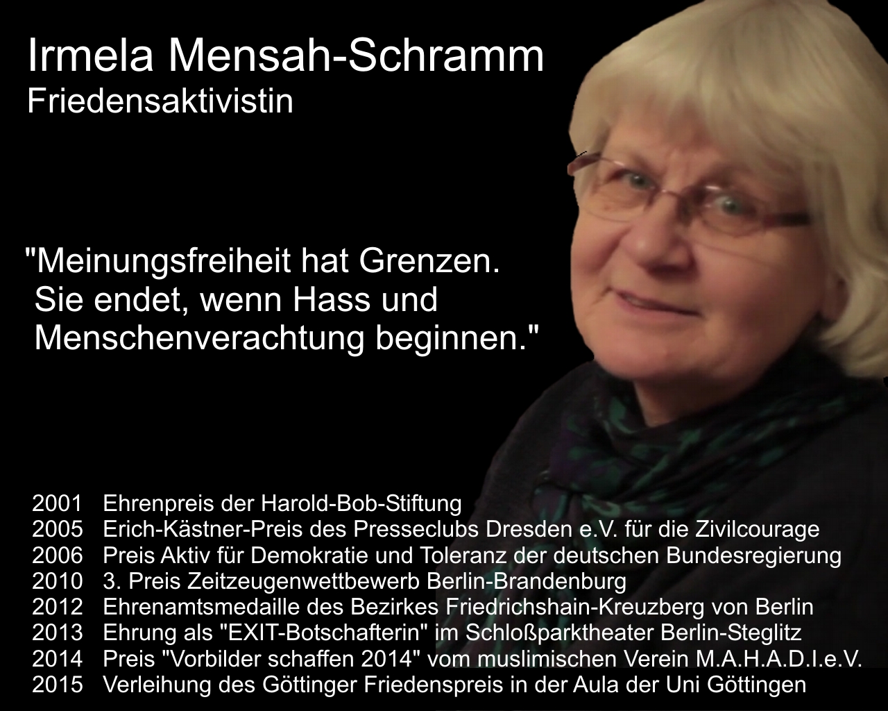 "Meinungsfreiheit hat Grenzen, sie endet wenn Hass und Menschenverachtung beginnen!" Das ist das große Lebensmotto von Irmela Mensah-Schramm.