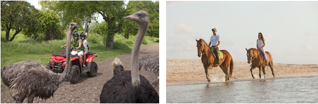 Der Reitsport hat auf Mauritius eine lange Tradition, immerhin befindet sich die zweitälteste Pferderennbahn der Welt auf der Insel. Sieben Reitställe bieten Pferdefreunden die Möglichkeit zu begleiteten Wanderritten in kleinen und individuellen Gruppen. Im Schritt oder Trab geht es entlang von Klippen und Küsten, vorbei an imposanten Wasserfällen bis hin zu paradiesischen Stränden. Dort können sich Pferd und Reiter gemeinsam im kühlen Nass erfrischen.