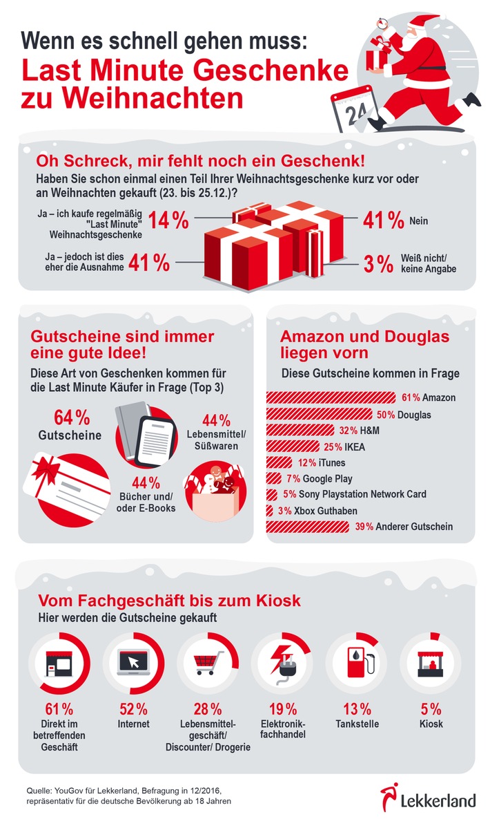 und wieder Last Minute Geschenke kaufen. Zu diesen Ergebnissen kommt