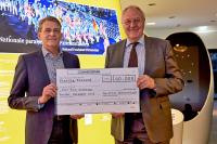 Bildunterschrift: Caverion Geschäftsführer Frank Krause (li.) überreicht den Spendenscheck über 40.000 Euro an Karl Heinz Burghardt, Vorstand der Ottobock Global Foundation.