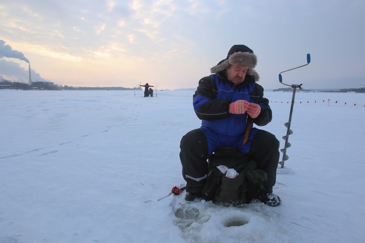 zum Beispiel beim Eisfischen, das am Onega-See auch als Wettangeln