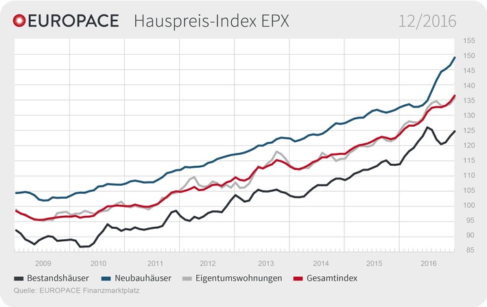 EUROPACE Hauspreis-Index (EPX): Immobilienpreise steigen in allen Segmenten (FOTO)