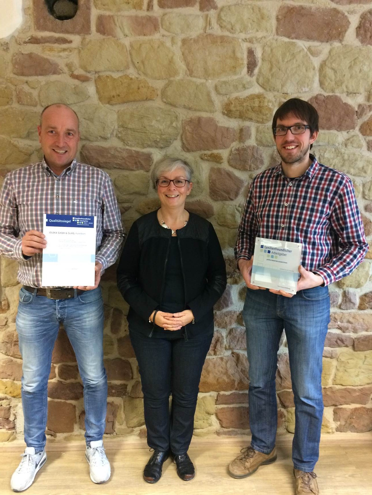 Die begehrte Auszeichnung erhielt JOLEKA nach einem rund dreimonatigen Prüfprozess. Neben Unternehmenskultur und Arbeitsorganisation standen insbesondere die konkreten Unterstützungsangebote des Betriebes an die Mitarbeiter(-innen) auf dem Prüfstand. Fabian Rieder begründet die Teilnahme am Zertifizierungsprozess: "Fehlende Kinderbetreuung in akuten Situationen bis hin zur plötzlich notwendigen Pflege von Angehörigen - dies kann schnell die Arbeitsfreude beeinträchtigen. Wir wollten sicher gehen, dass wir auf dem richtigen Weg sind, für unsere Beschäftigten auch im familiären Umfeld genügend Unterstützung zu bieten."