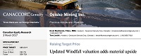 Sehr positiv eingestellt zu Osisko Mining ist auch der Cannaccord Genuity Analyst Kevin MacKenzie, der nicht nur die Aktien des Unternehmens in seiner neuesten Research-Ausgabe zum spekulativen Kauf empfiehlt, sondern auch noch das Kursziel von 4,- auf 5,- CAD erhöht hat.