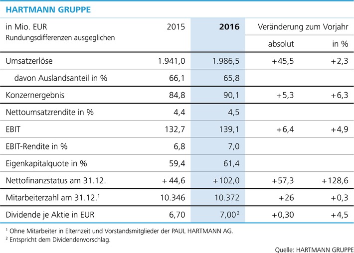 HARTMANN GRUPPE blickt auf ein erfolgreiches Geschäftsjahr 2016