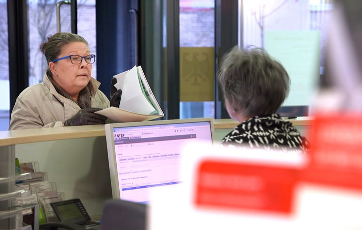 Angestellte arbeiten. Der Film zeigt das Beispiel einer