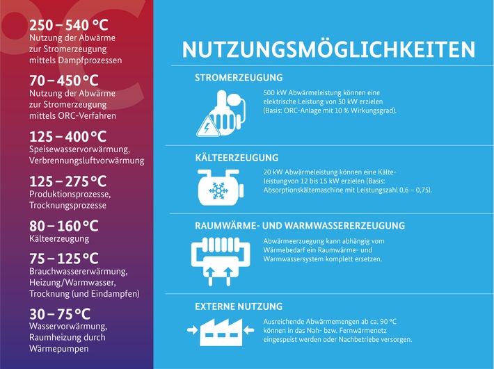Strom, Heizung oder Kälte: Abwärme ist vielfältig nutzbar