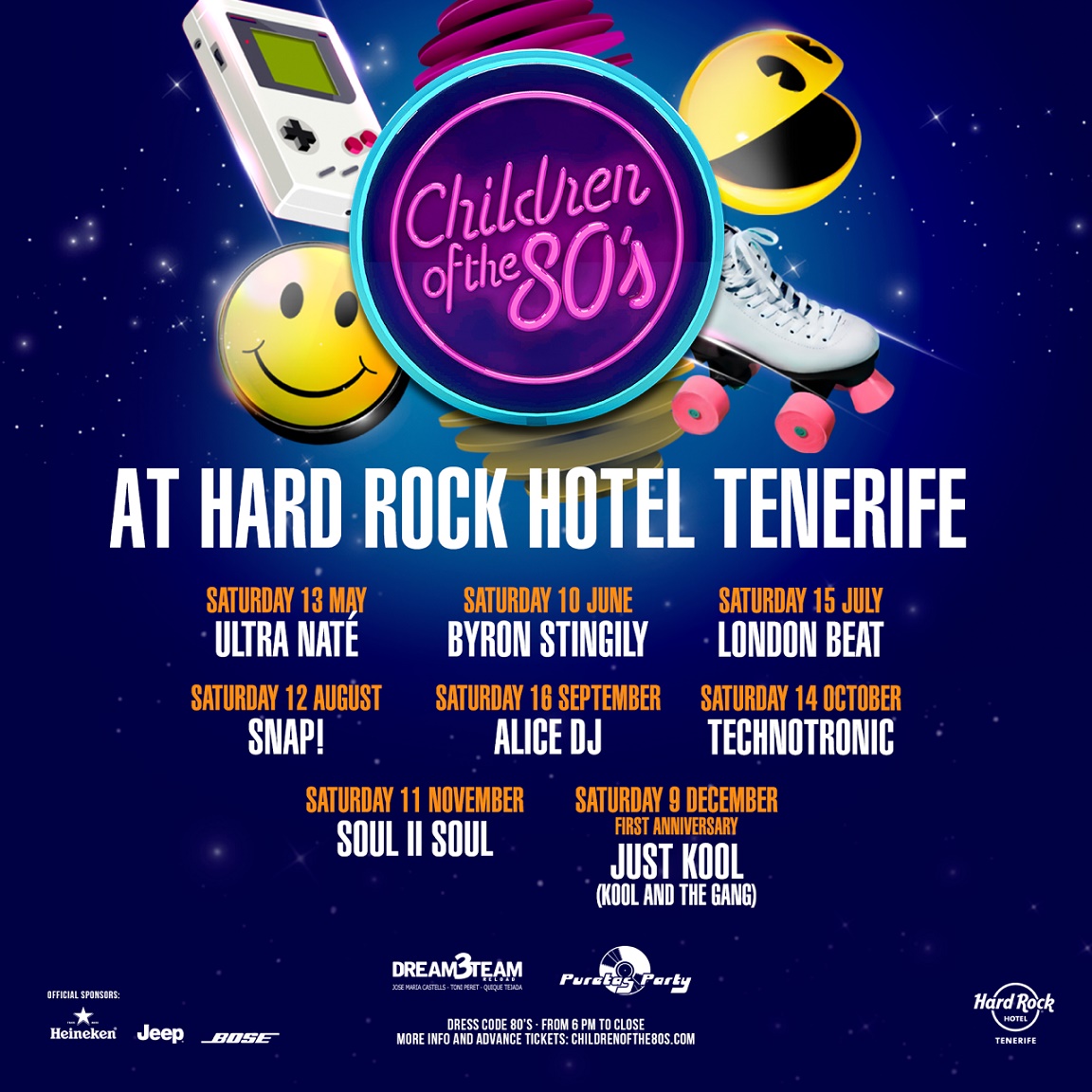 Am 10. Juni wird Byron Stingily auf der Bühne stehen und das Publikum mit seinen besten Hits aus den 80er Jahren, darunter der berühmte Titel "Get Up Everybody", zum Singen und Tanzen bewegen. Londonbeat kommen am 15. Juli ins Hard Rock Hotel Tenerife und bringen neben ihrem Hit "I've Been Thinking About You" den besten Mix aus R&B und Dance aller Zeiten aus der britischen Hauptstadt direkt auf die Kanarische Insel. "The Power", der Dance-Hit, der Snap! bekannt gemacht hat, wird an der Salzwasserlagune des Hard Rock Hotel Tenerife erklingen, wenn die Band am 12. August bei "Children of the 80s" auf der Bühne steht. Am Abend des 16. September gibt Alice DJ ihre Hits aus den 90ern zum Besten, unter anderem ihre wohl bekanntesten Titel "Better Off Alone", "Back In My Life" und "Will I Ever".
