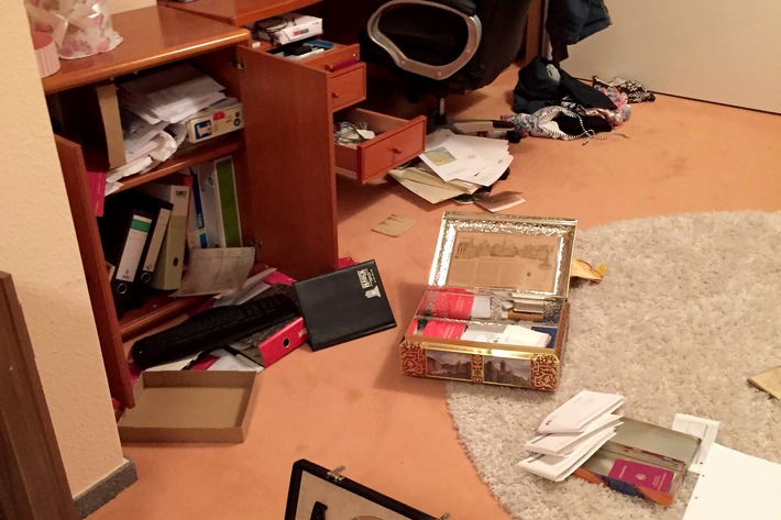 Schränke und Schubladen sind ausgeräumt, Computer, Geld, Kamera -