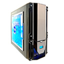 Auf dem Frontpanel finden sich zwei USB und Audio Ports sowie eine blau beleuchtete LCD Temperaturanzeige. Insgesamt stehen fünf externe 5,25" Einschübe, 1 externer 3,5" Einschub und vier interne 3,5" Einschübe zur Verfügung. Die Laufwerke werden mittels eines Schienensystems installiert, wobei keine Schrauben benötigt werden. In dem Gehäuse können ATX, Micro ATX sowie Baby AT Mainboards eingesetzt werden.