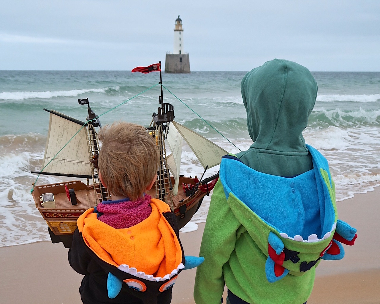 Das Piratenschiff ist unsere Version einer Flaschenpost. Unsere Eltern wollten uns zeigen, wie die Strömungen im Meer funktionieren und wie groß die Welt eigentlich ist. Natürlich ist es aber nicht sehr umweltfreundlich, Plastikflaschen ins Meer zu werfen. Also hatten wir die Idee mit dem Schiff. Damit es bei der Überfahrt über die Nordsee seetauglich bleibt, mussten wir gemeinsam mit unserem Vater ein paar Veränderungen vornehmen. Auch dabei haben wir sehr viel gelernt.