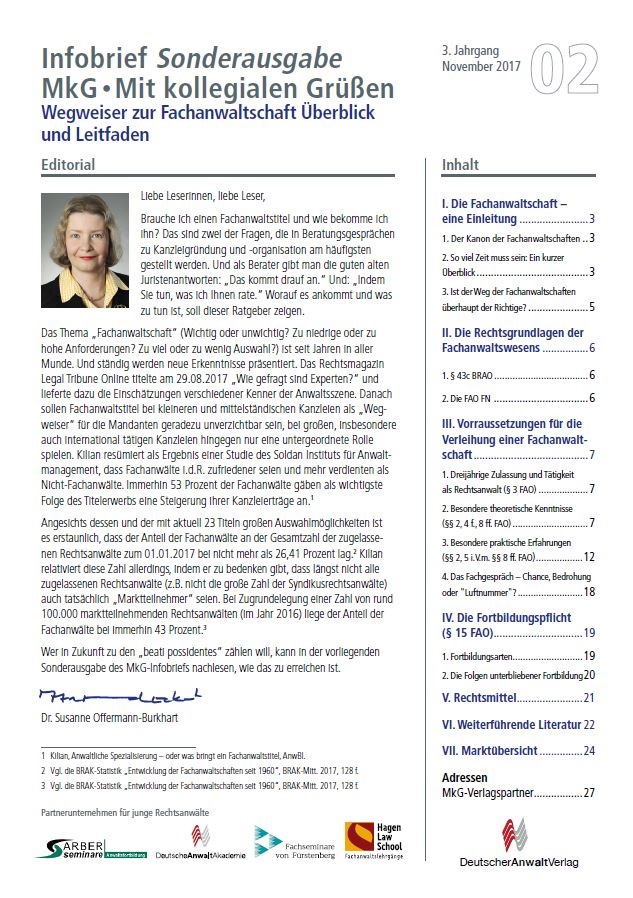 Neue MkG-Sonderausgabe "Wegweiser zur Fachanwaltschaft"