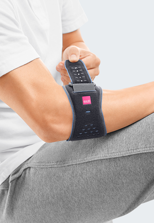 Die medi Epibrace ist beim Tennis- und Golferellenbogen, Mausarm sowie für den linken und rechten Arm einsetzbar. Sie besitzt jetzt eine flexible Pelotte mit 3D-Profil, die therapiegerecht positioniert werden kann. Zusammen mit dem Gurtband, mit dem der Druck auf die schmerzenden Sehnenansätze individuell dosiert werden kann, sorgt sie für eine effektive Entlastung. Dank der Nummerierung am Gurtband wird die gewünschte Druckintensität individuell eingestellt. Die medi Epibrace fördert die Durchblutung und unterstützt den Heilungsprozess.