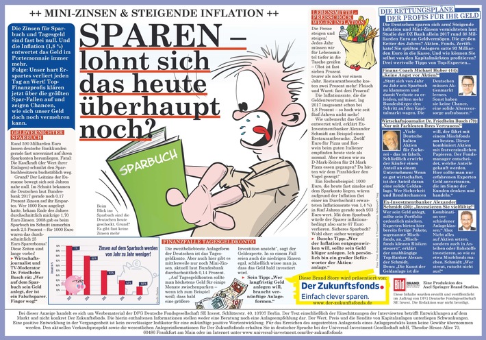 DFG wirbt mit "Der Zukunftsfonds" in Print- und Onlinemedien sowie in
