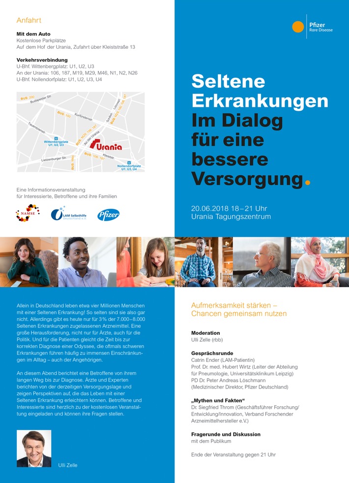 "Seltene Erkrankungen: Pfizer lädt Betroffene, Angehörige und Interessierte sowie Ärzte zum Austausch ein / Informationsabend für Betroffene und Angehörige (FOTO)"