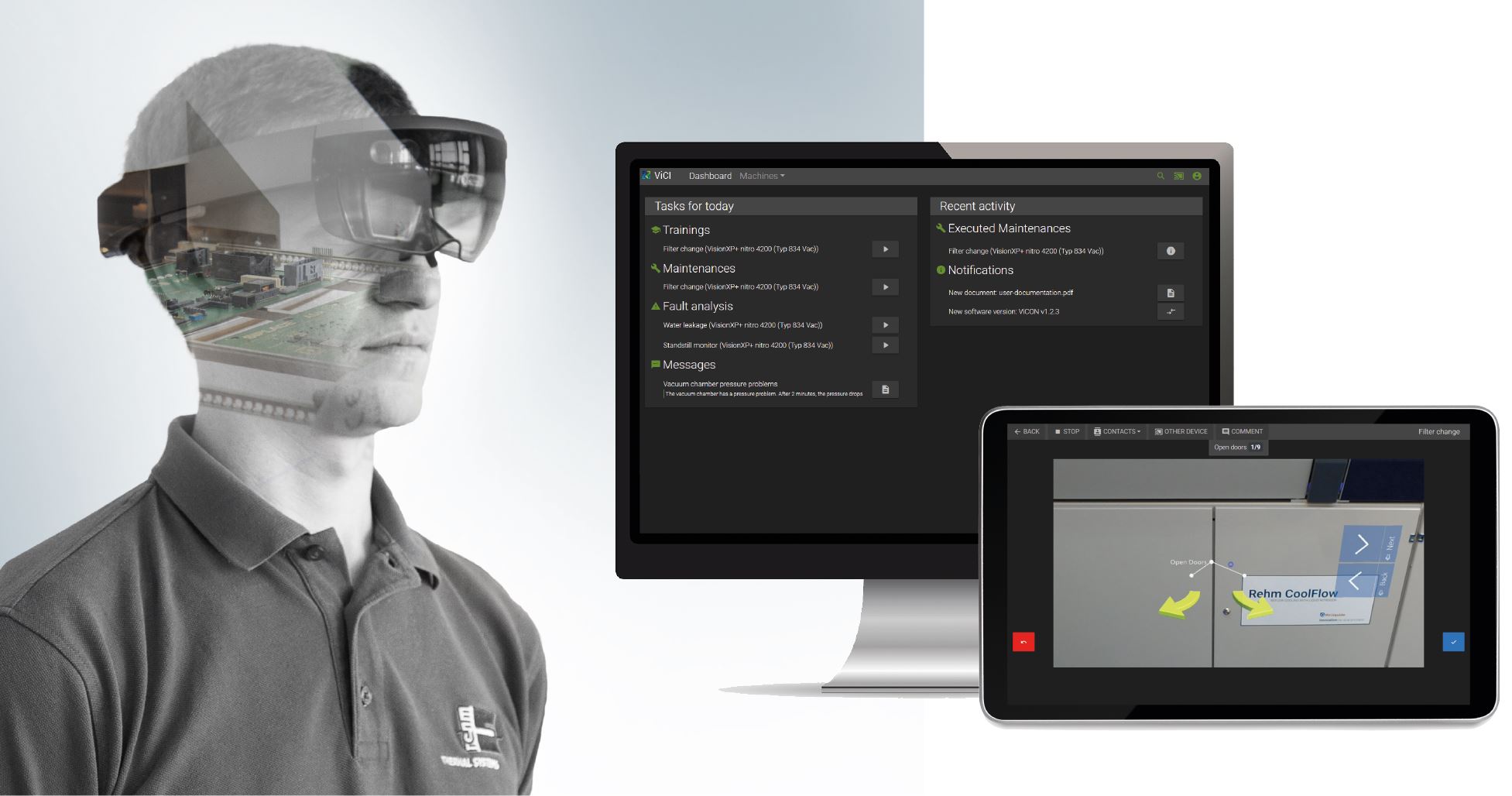 ViCI steht dabei für Virtual Communication Interface und ist als Portal zur Wartungsunterstützung in der modernen Elektronikfertigung gedacht. Konkrete Bestandteile sind eine Unterstützung mit Hilfe von Datenbrillen, geführte Wartungsszenarien auf Tablet oder Smartphone sowie eine umfassende und erweiterbare Wissensdatenbank.