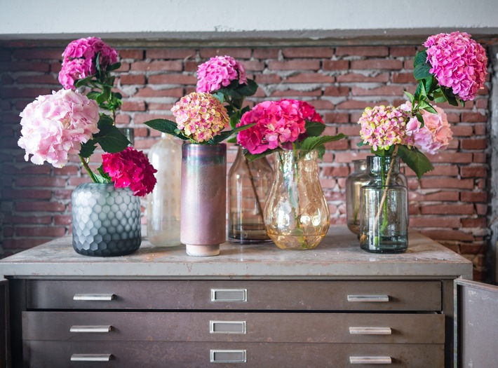 "Hortensien in Vasen für lebendigen Look / Für echtes Sommer-Feeling: die Hortensie als Schnittblume (FOTO)"