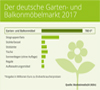 Gute Nachrichten für die Garden-Living-Branche: Fast 62 Prozent der Deutschen zwischen 30 und 49 Jahren kaufen für Garten und Balkon bevorzugt Markenmöbel, selbst wenn diese „etwas teurer“ sind. Dies ist das Ergebnis einer repräsentativen Konsumentenbefragung (Basis 1.000 Teilnehmer). Das Marktforschungsinstitut Marketmedia24 in Köln gibt diese jetzt in Zusammenarbeit mit dem Primärforschungsspezialisten Noceanz GmbH in Würzburg im neuen „Branchen-REPORT Gar-den-Living 2025" heraus. In der Studie wird – nach Ziel- und Altersgruppen aufgeschlüsselt – gezeigt, wie der Konsument heute tickt, was er wo wie oft gekauft hat und wo er wie wohnt. In der neuen Studie werden darüber hinaus erstmals 26 Garden-Living-Produktgruppen unter die Lupe genommen. Wie sich die deutsche Garden-Living-Branche bis zum Jahr 2025 entwickeln könnte, zeigen ergänzende Markt- und Handelsszenarien.