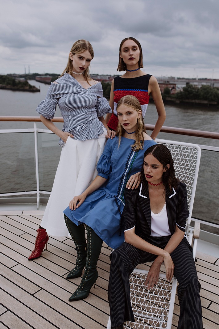 den Farben Rot, Navy und Weiß zu maritimen Looks verarbeitet. Die
