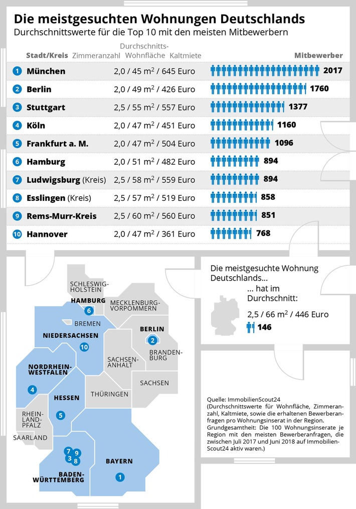 Die meistgesuchte Wohnung Deutschlands: 66 Quadratmeter für 446 Euro Kaltmiete / Exklusive Analyse von ImmobilienScout24 zum Wohngipfel (FOTO)