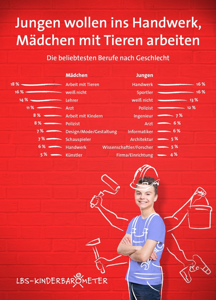 ""...irgendwas mit wenig Mathe wo ich viel Geld verdiene" / Bei den Berufswünschen bleiben unsere Kinder konservativ / LBS-Kinderbarometer: Jungen wollen ins Handwerk, Mädchen mit Tieren arbeiten (FOTO)"