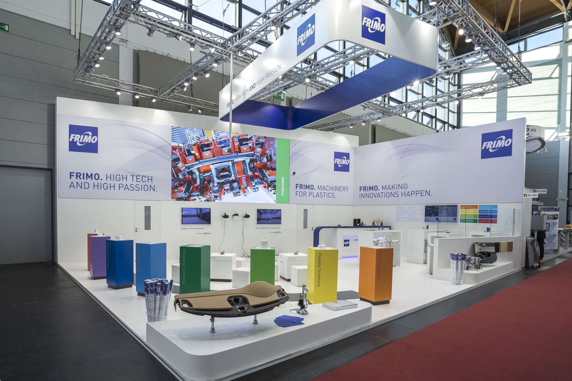 (firmenpresse) - 17.09.2018 - Wenn vom 16. bis zum 20. Oktober 2018 die FAKUMA wieder zum herausragenden Branchentreffpunkt der internationalen Kunststoffindustrie wird, zeigt die FRIMO Gruppe (Halle A1, Stand 1334) die jüngsten Weiterentwicklungen aus den Bereichen PUR Verarbeitung, Oberflächenveredelung (Thermoformen, Kaschieren), Beschnitt-Technologien, Kunststofffügen und Composites/Leichtbau. Unter dem Motto HIGH TECH AND HIGH PASSION können die Besucher außerdem in die virtuelle FRIMO Welt eintauchen und Anlagen für das komplette Technologiespektrum in Originalgröße live erleben.