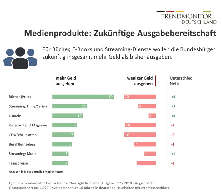 der Deutschen für einzelne Medienprodukte mehr Geld ausgeben als