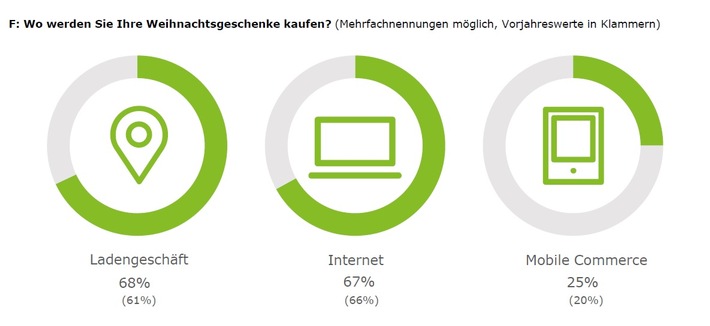(68 Prozent) wollen im stationären Handel auf Präsente-Jagd gehen.