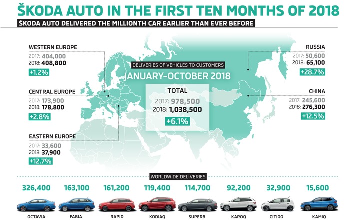 - Auslieferungen: SKODA liefert in den ersten zehn Monaten 2018