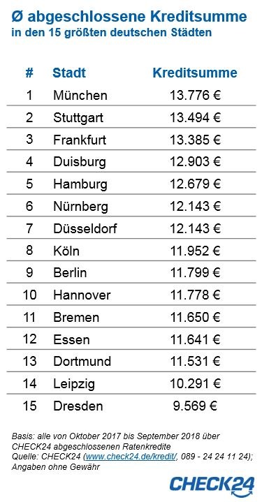 Nicht nur bei der Höhe der Kreditsumme sticht München heraus.