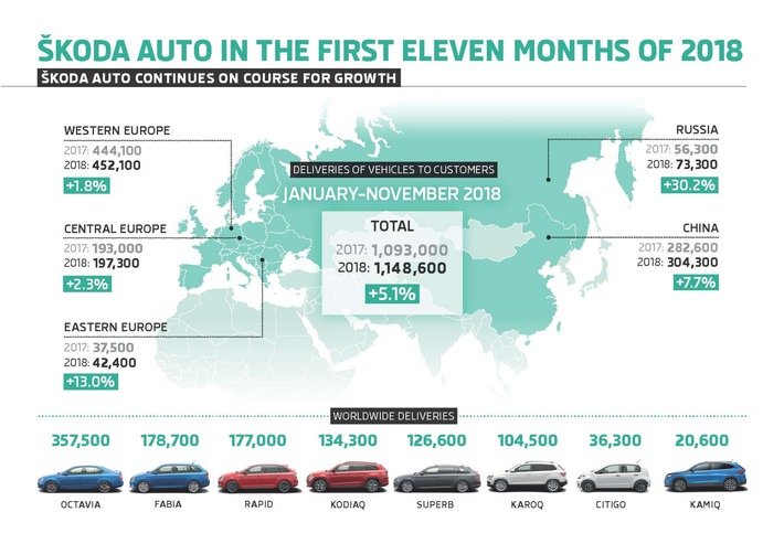 - Auslieferungen: Von Januar bis November liefert SKODA weltweit