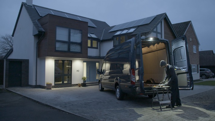 "Ideal für die Arbeit an dunklen Wintertagen: Neuer Ford Transit verfügt über leistungsstarke LED-Außenleuchte"
