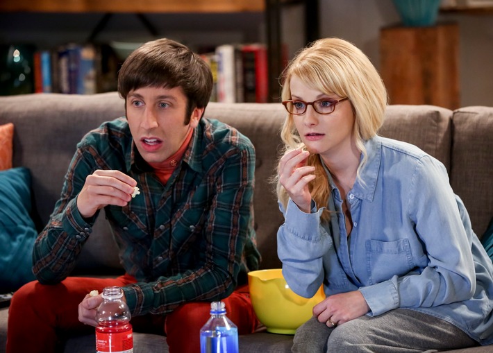 Howard (Simon Helberg, l.), seine Frau Bernadette (Melissa Rauch,