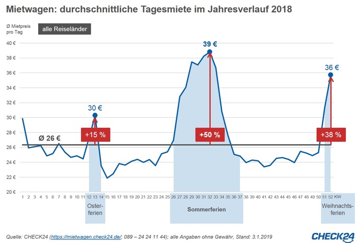 *)Datengrundlage: alle Mietwagenbuchungen über CHECK24 in Jahr