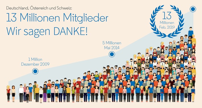 Mehr als 13 Millionen Mitglieder in Deutschland, Österreich und