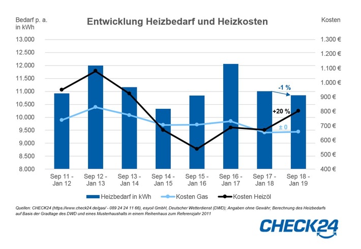 Vorjahreszeitraum (672 Euro). Grund: Im Herbst 2018 war Heizöl