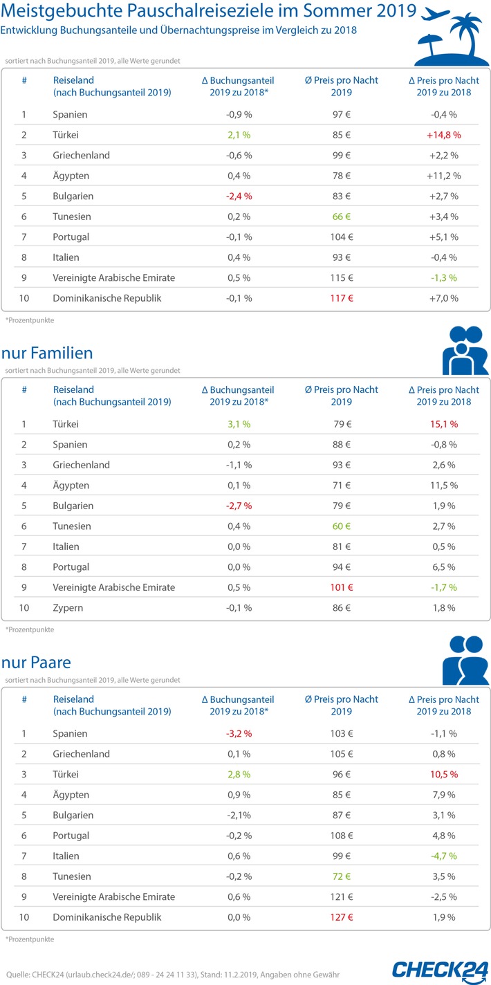 CHECK24 gebucht. Auf Platz zwei folgt die Türkei im Länderranking vor