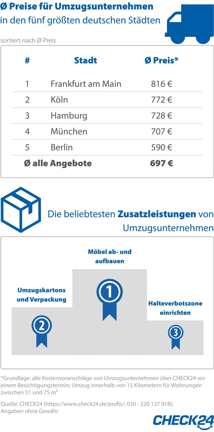 - Umzugsunternehmen in Frankfurt am Main am teuersten, in Berlin