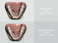 Mit der Aligner-Therapie kann jedoch nicht nur das ästhetische Erscheinungsbild verbessert werden. Die durch Zahnfehlstellungen begünstigte Entstehung von Karies oder Zahnfleischproblemen wird ebenfalls minimiert.