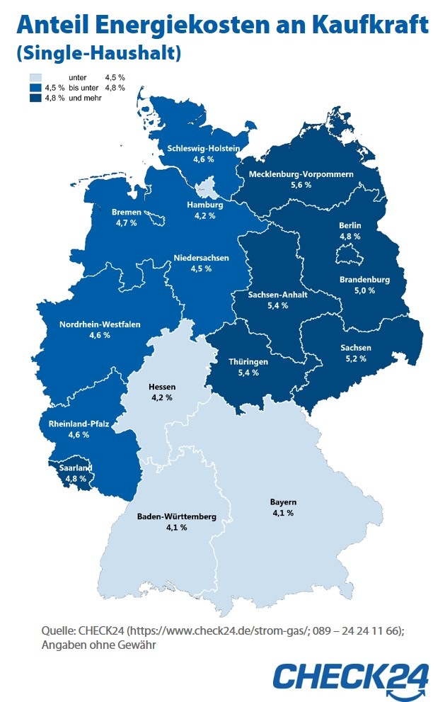 - Energiekostenquote in Mecklenburg-Vorpommern mit 5,6 Prozent am