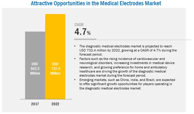 "Medical Electrodes Market by Usability (Disposable, Reuse), Technology (Dry Electrodes, Wet, Needle), Diagnostic Procedures (ECG, EEG, EMG, EOG, ERG), Application (Cardio, Neurophysiology, Sleep Disorders, Intraoperative) - Global Forecast to 2022", published by MarketsandMarkets™.