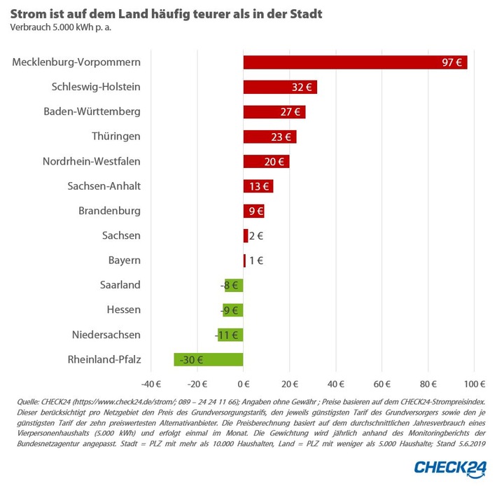 - Mecklenburg-Vorpommern: Strom für Familien auf dem Land 97 Euro