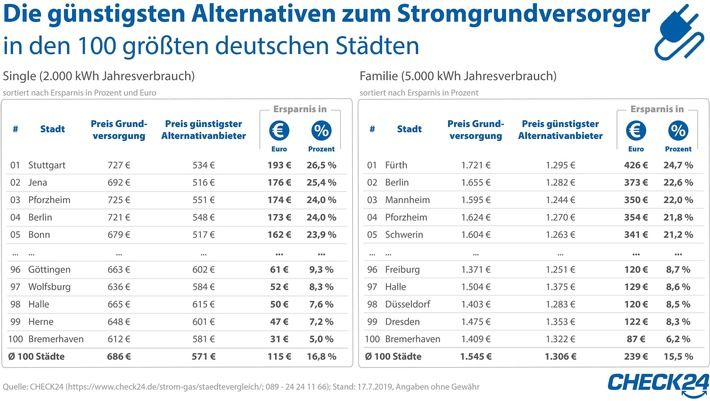 Ein Single in Stuttgart (2.000 kWh Jahresverbrauch) spart so bis zu
