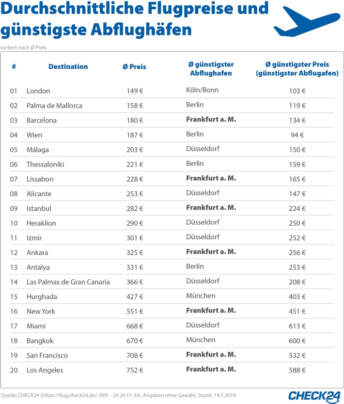 Reisende zu vier Zielen am günstigsten. "Der gewählte Abflughafen hat