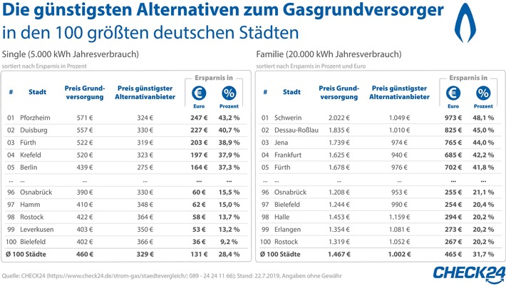 "100 Städte: Anbieterwechsel senkt Gaskosten um bis zu 48 Prozent (FOTO)"