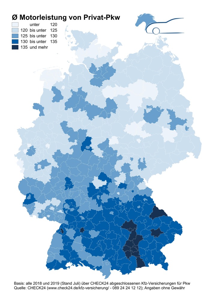 Im Schnitt sind CHECK24-Kunden mit 127,8 PS unterwegs. Deutlich